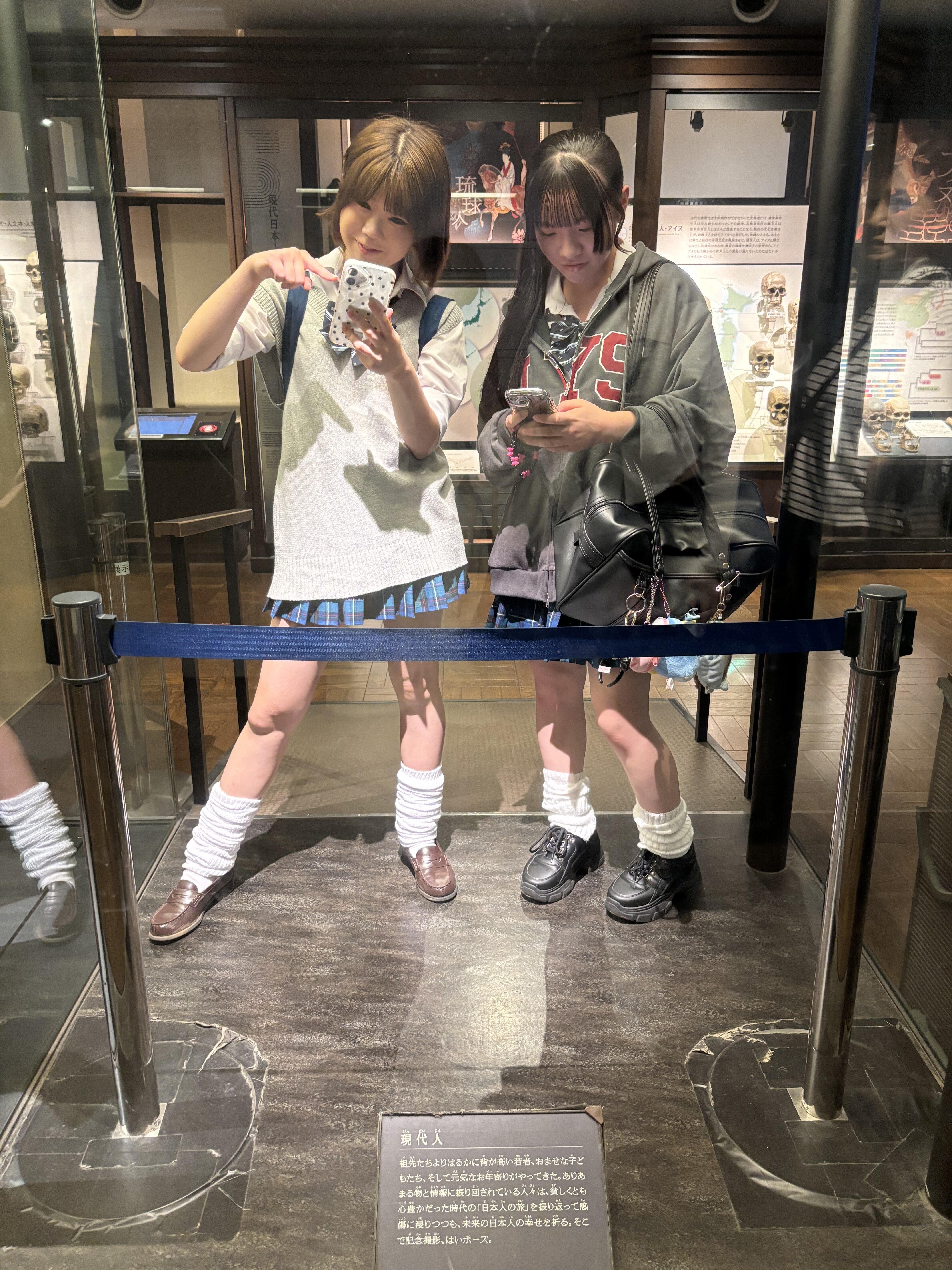 国立科学博物館は本当に広く生徒達もどれから見学していこうか、迷っていました💦その中でも興味関心が高かったのがこちらの展示物です。各年代の日本人の様子を展示していたのですが、「現代人」のところで???
