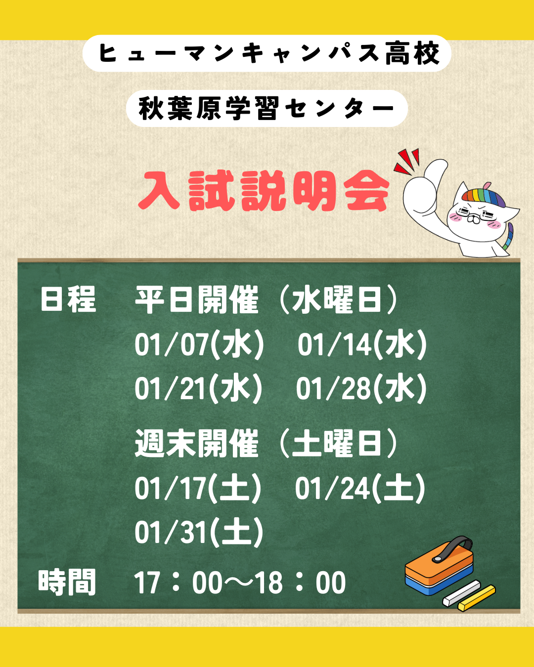 - 【秋葉原】1月度入試説明会のお知らせ