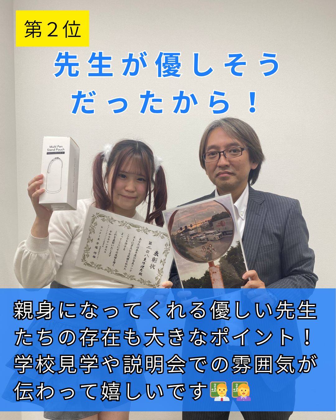 🥈第2位:先生が優しそうだったから!