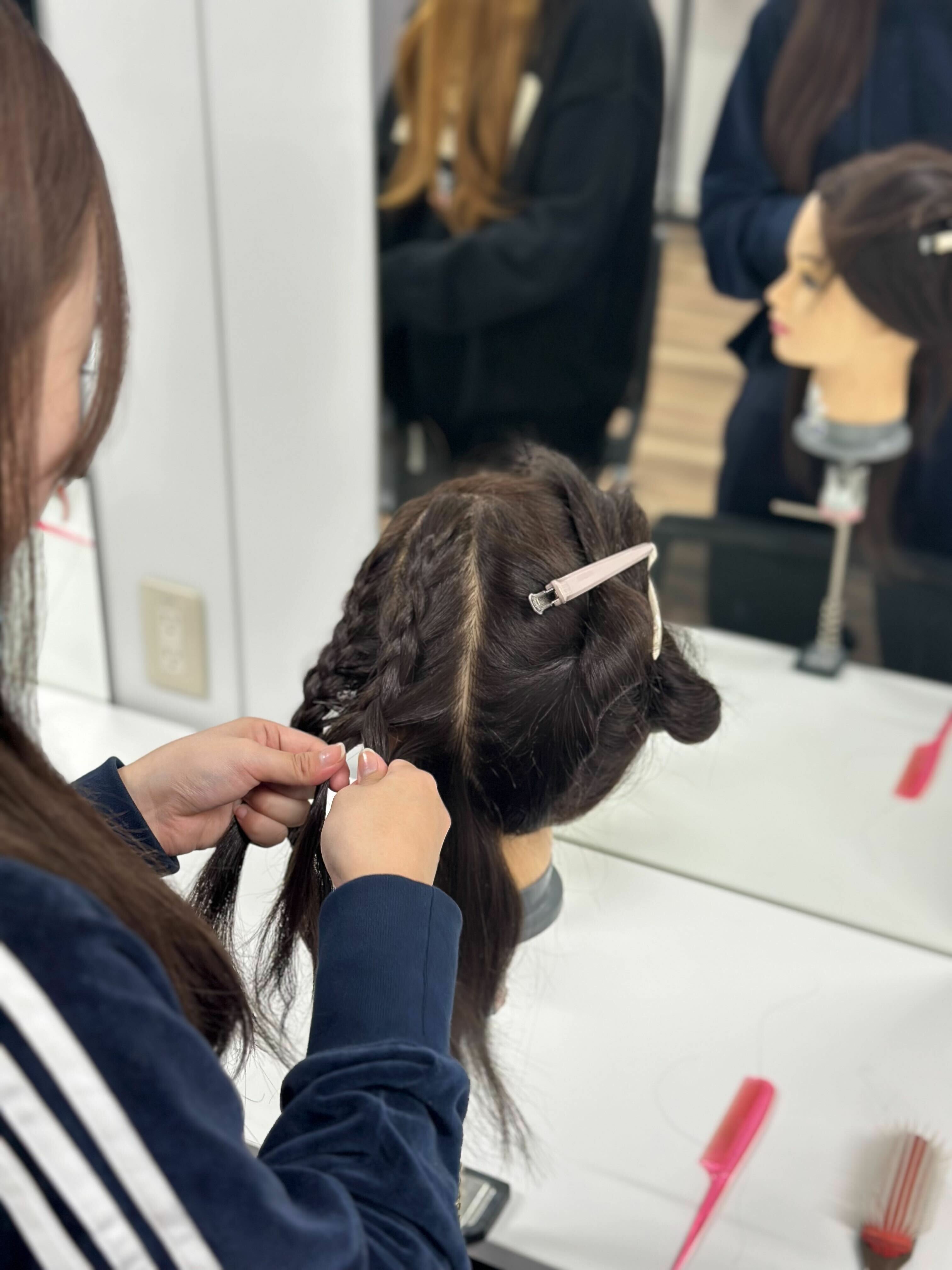 メイクの授業では、後期からヘアアレンジの練習をしています!