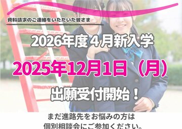 【福岡】2026年度新入学出願受付開始!(完全個別の説明会)
