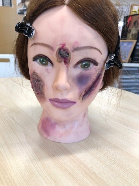 ハロウィンにむけて、傷メイクの練習をし