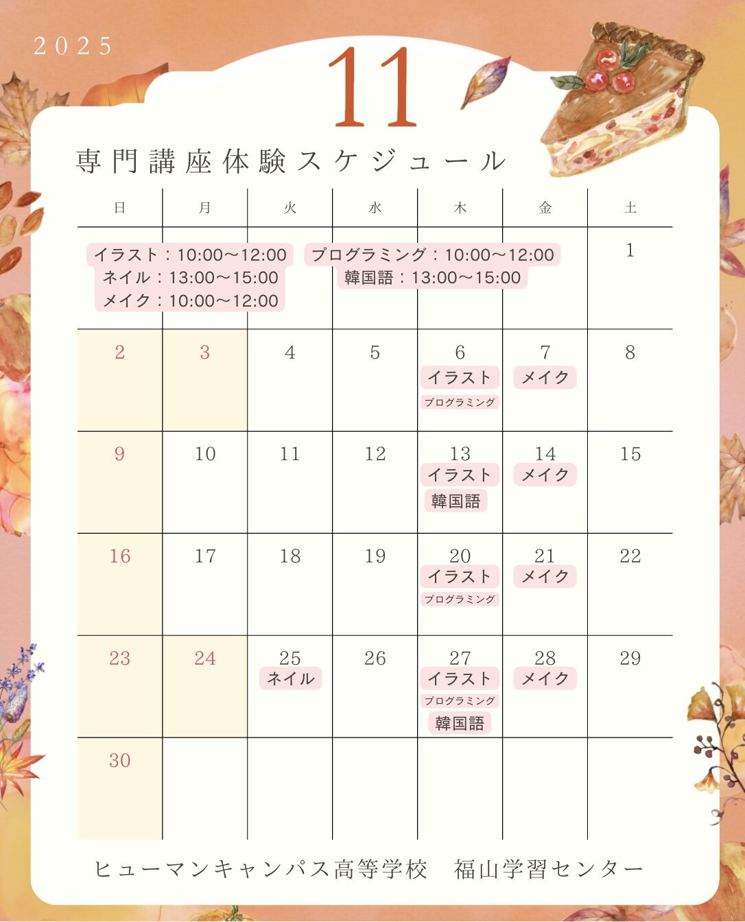 - 【福山】11月の専門授業体験スケジュール