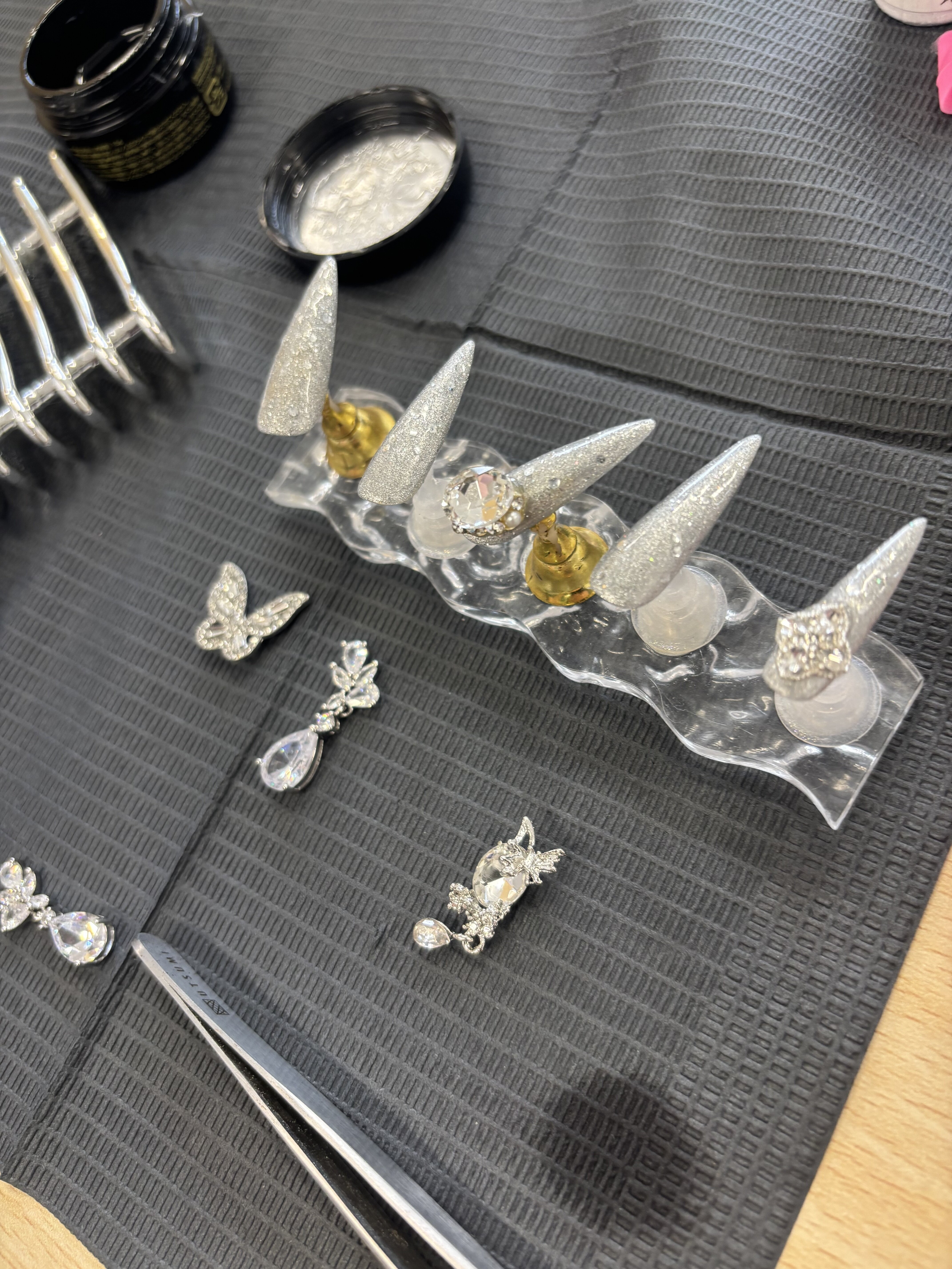ジェルと片栗粉を使ってお花のパーツを自分で制作したり、