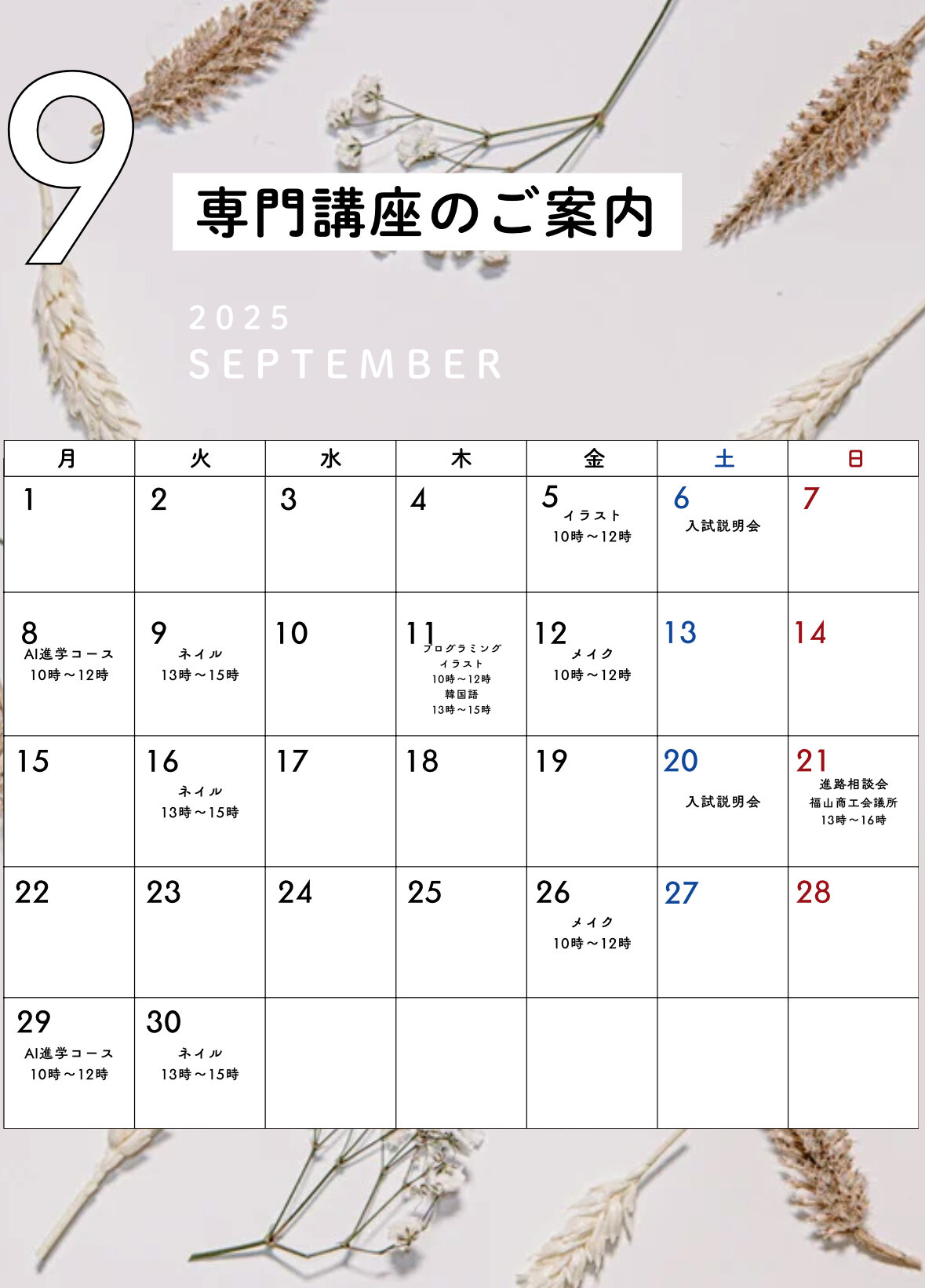 - 【福山】9月体験講座・入試説明会のお知らせ