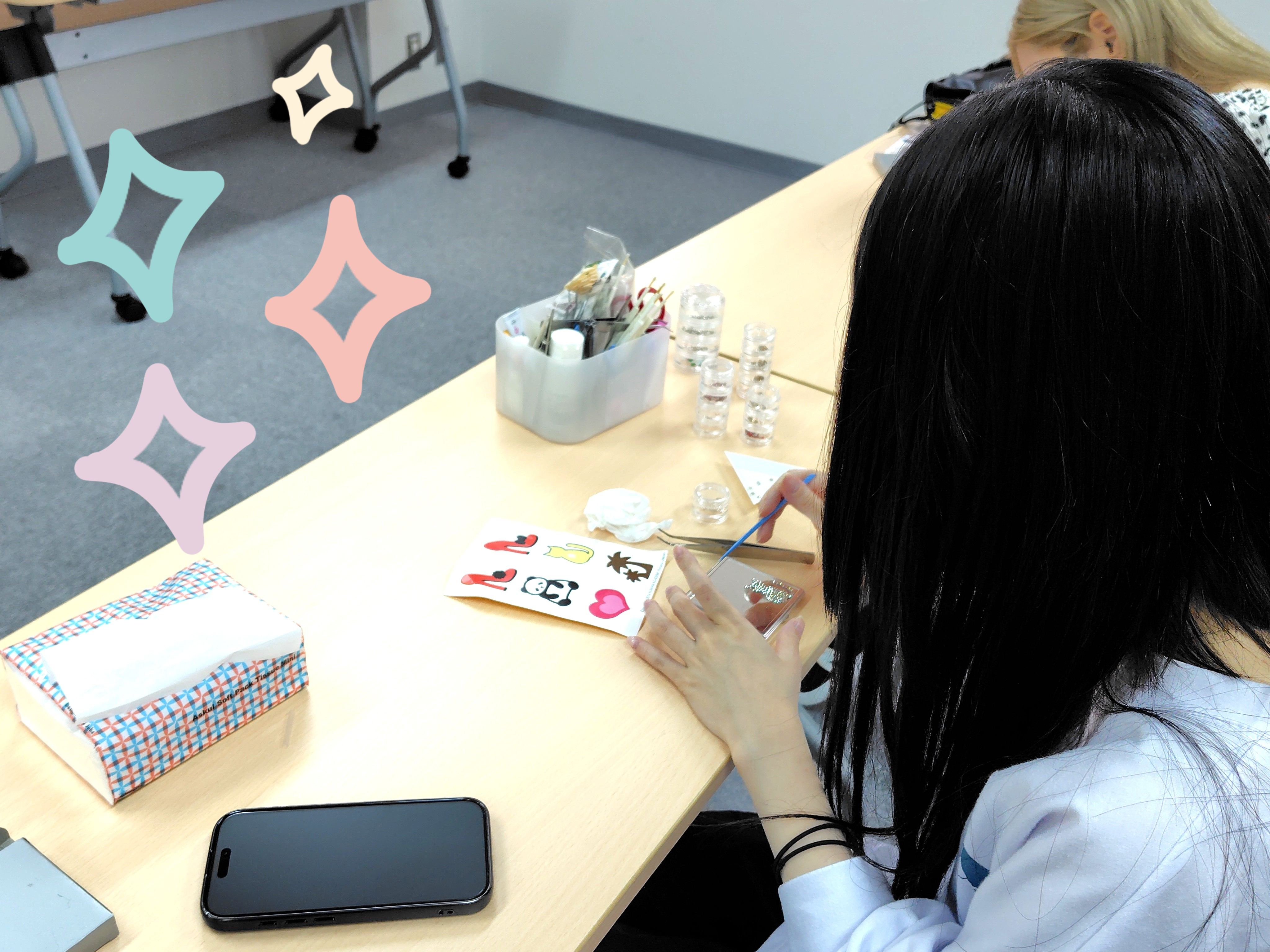 今回は、メイク美容コースの「デコレーションミラー作り」の様子をお届けします!