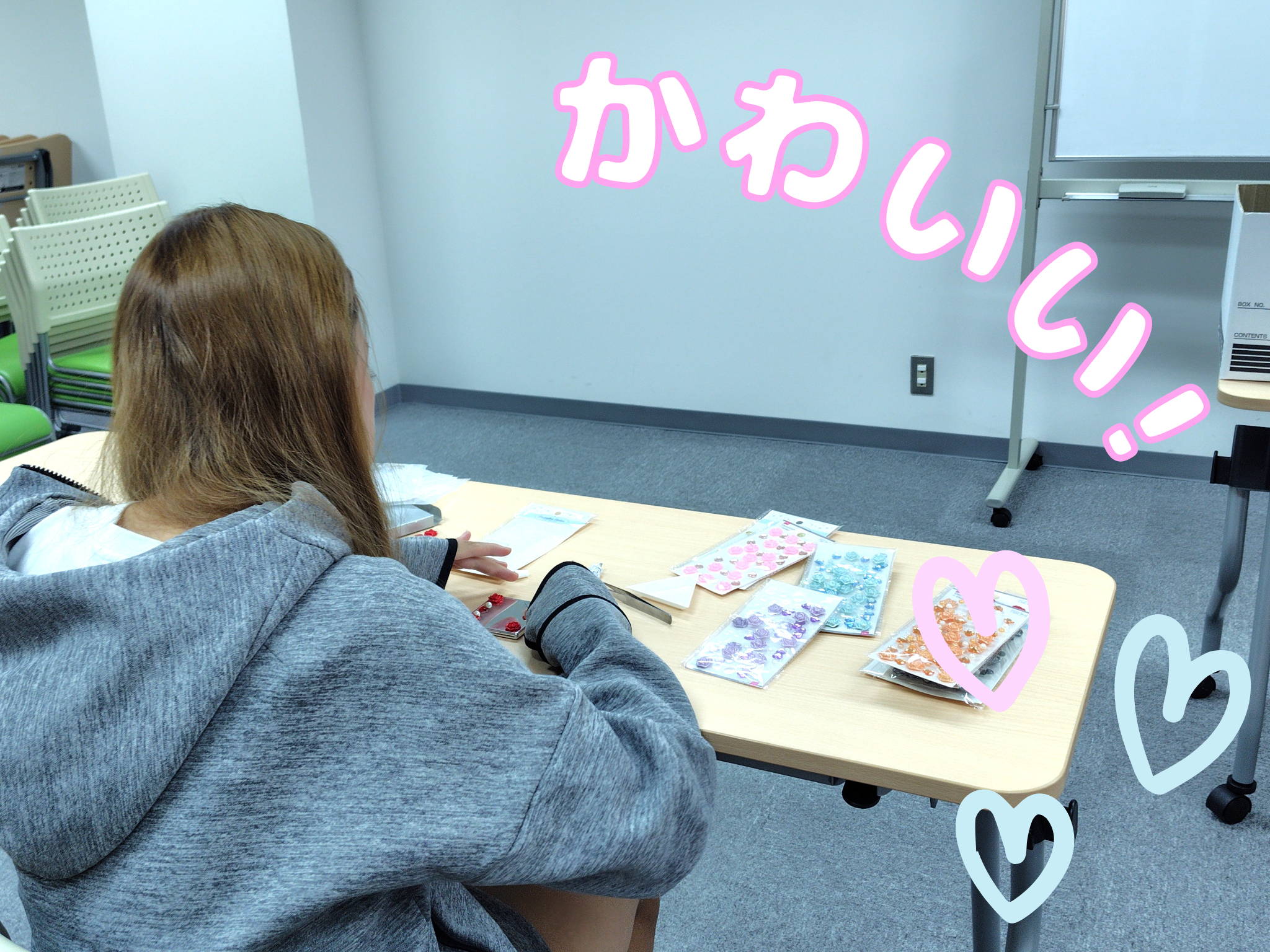 どこに何を貼るか真剣に考えながら鏡をデコっていました☺