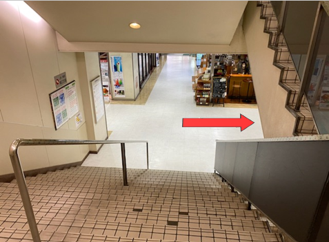 ③入ってすぐに階段があるので、1階まで下ります。