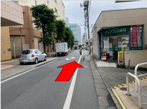 ⑧ 正面にビルが見えてきます。