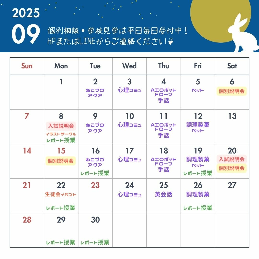 - 【川崎】9月の授業見学スケジュール🌙🎑