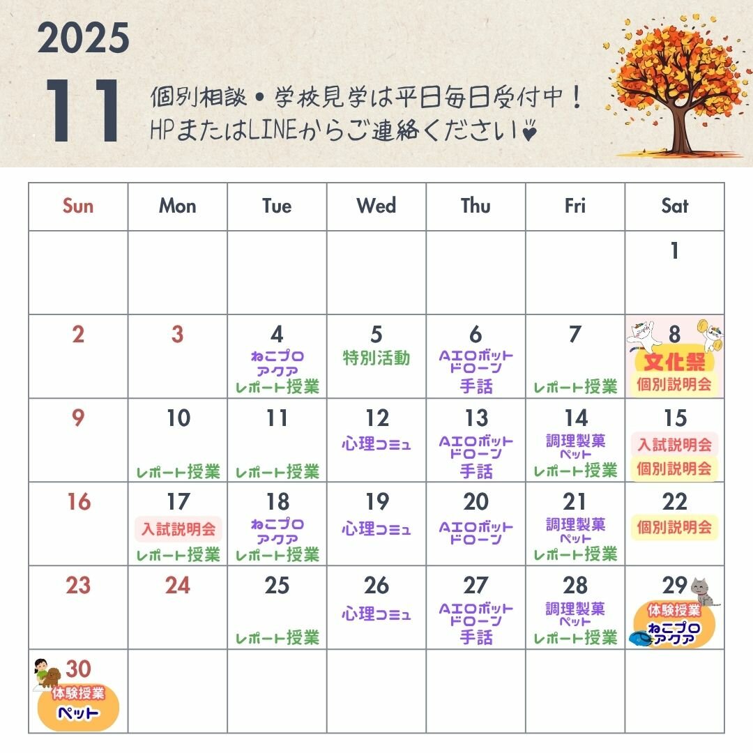- 【川崎】📢11月の学校見学のお知らせ🍁