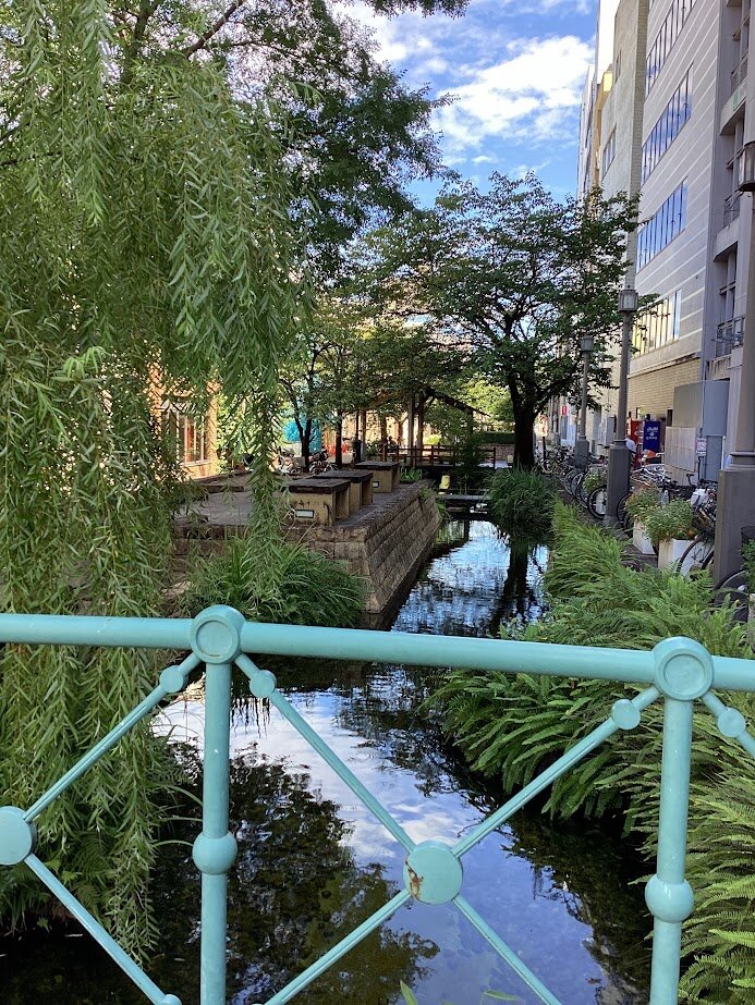 しかしながら、高知学習センターの建物の前にあるはりまや橋公園は、私たちに涼を与えくれ、ほっとするひと時を感じることができます。