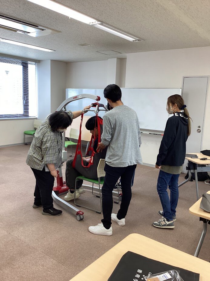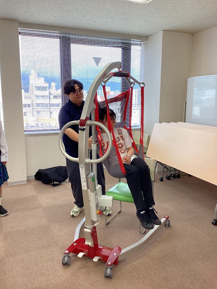 今日は、高知県ホームヘルパー連絡協議会から講師の先生をお招きして、訪問介護についてのお話と福祉用具の体験授業を実施しました。