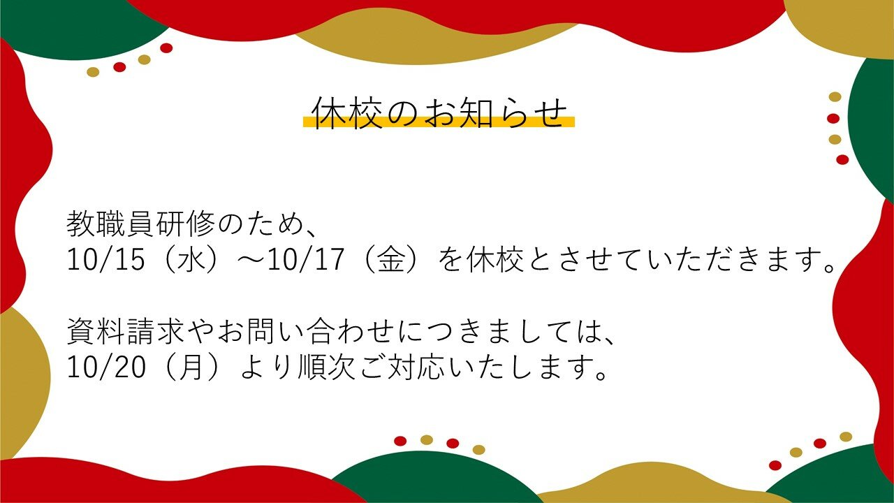 10/15(水)~10/17(金)を休校とさせていただきます。