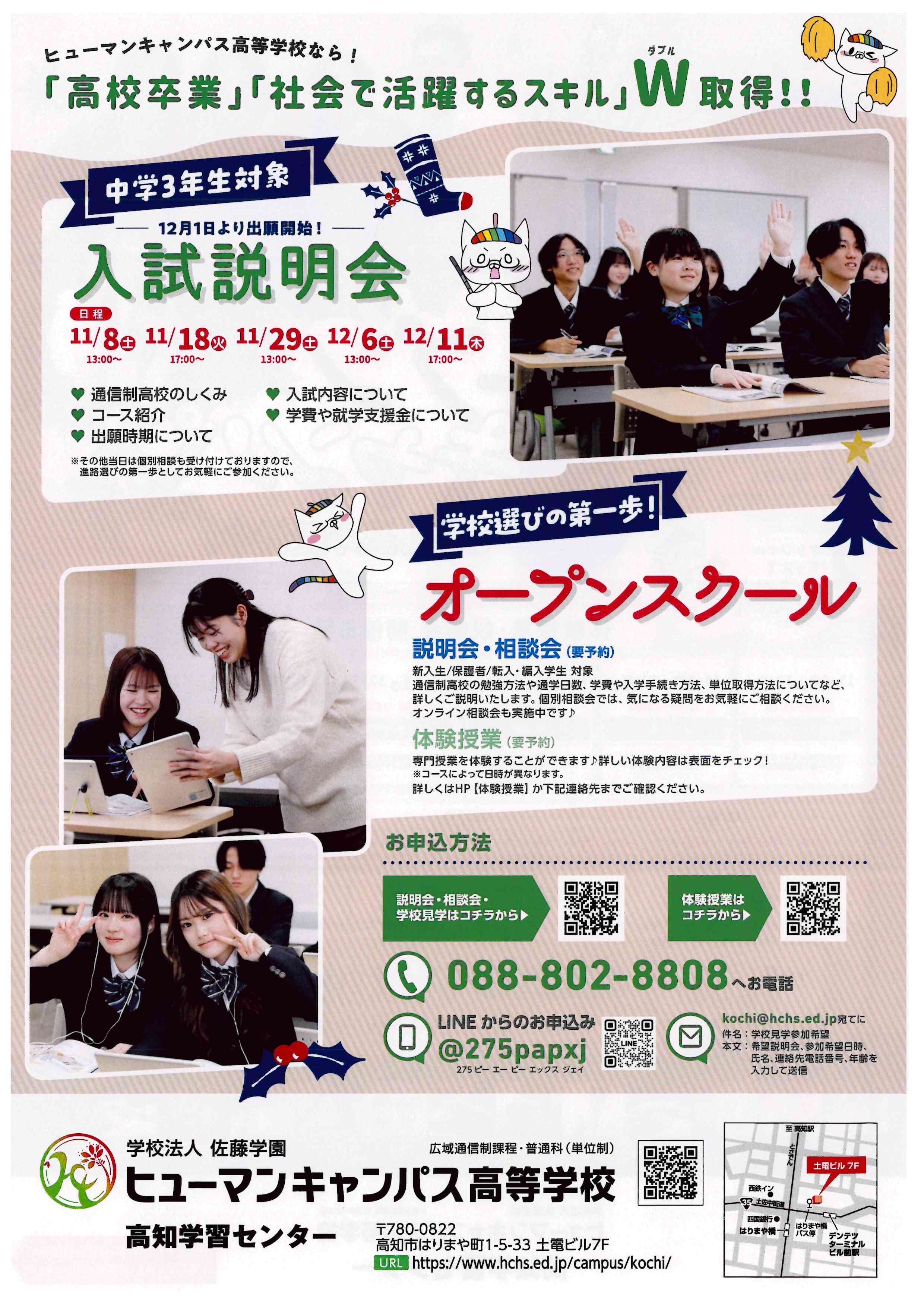 (月曜日~金曜日 9時~18時 土日祝休) kochi@hchs.ed.jp