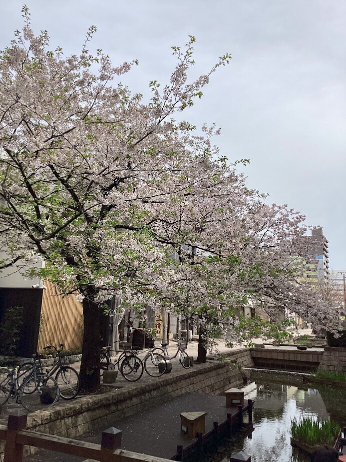 (先月お知らせしてきた学習センター前の桜ですが、先週の激しい風雨の影響でだいぶ散ってしまいましたが、それでもまだ可憐な花がついています。今年も楽しませてもらいました。)