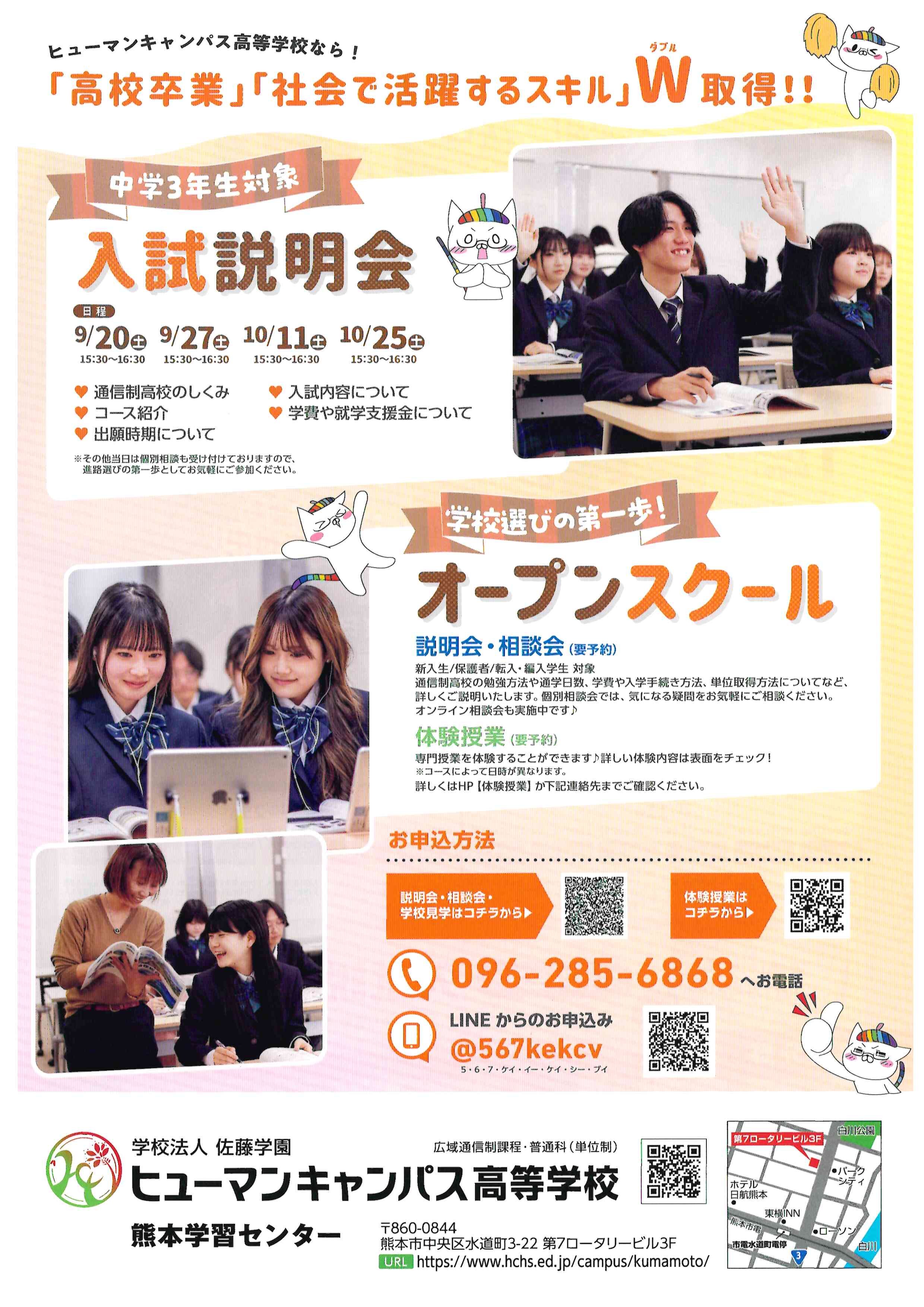- 【熊本】9月10月のオープンスクールと入試説明会のご案内!