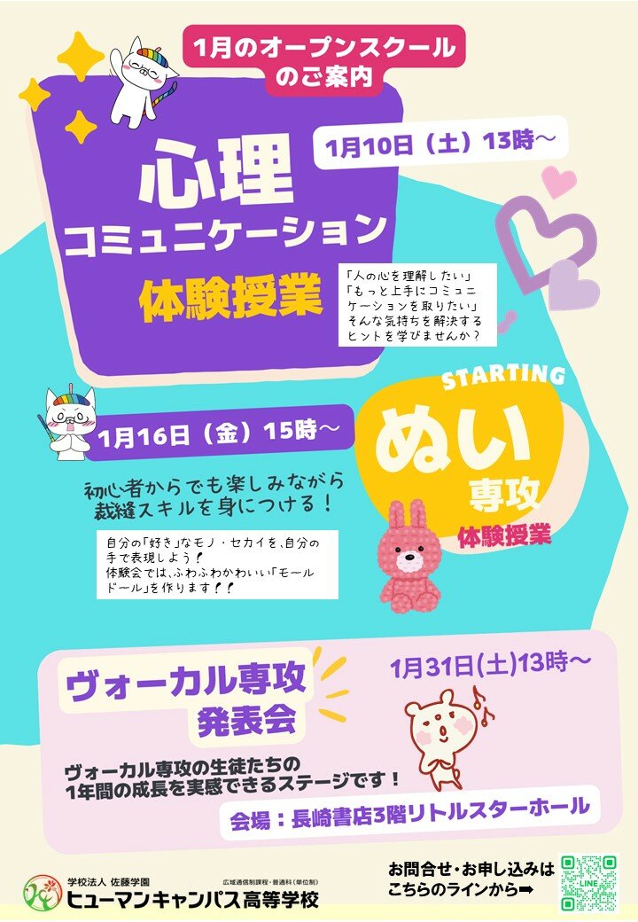 1月は、「心理・コミュニケーション専攻」「ぬい専攻」の体験授業、