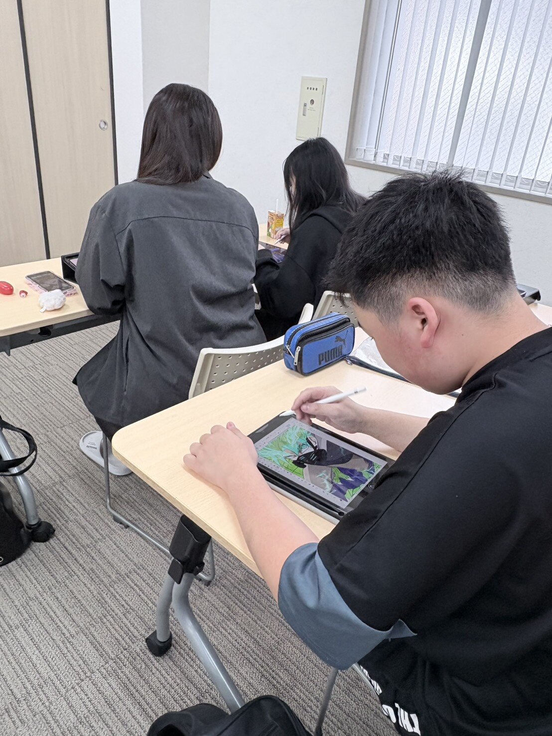 本日は、生徒たちがリラックスした雰囲気でイラスト作成を楽しんでいる様子をお届けします!