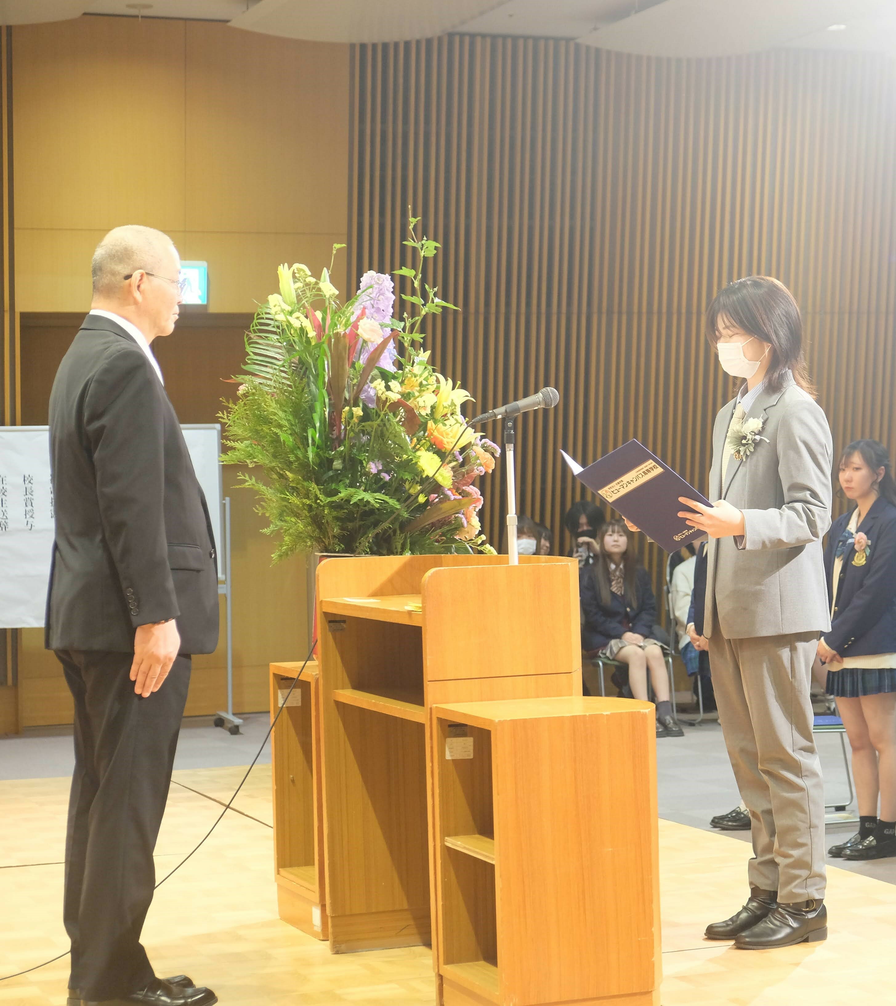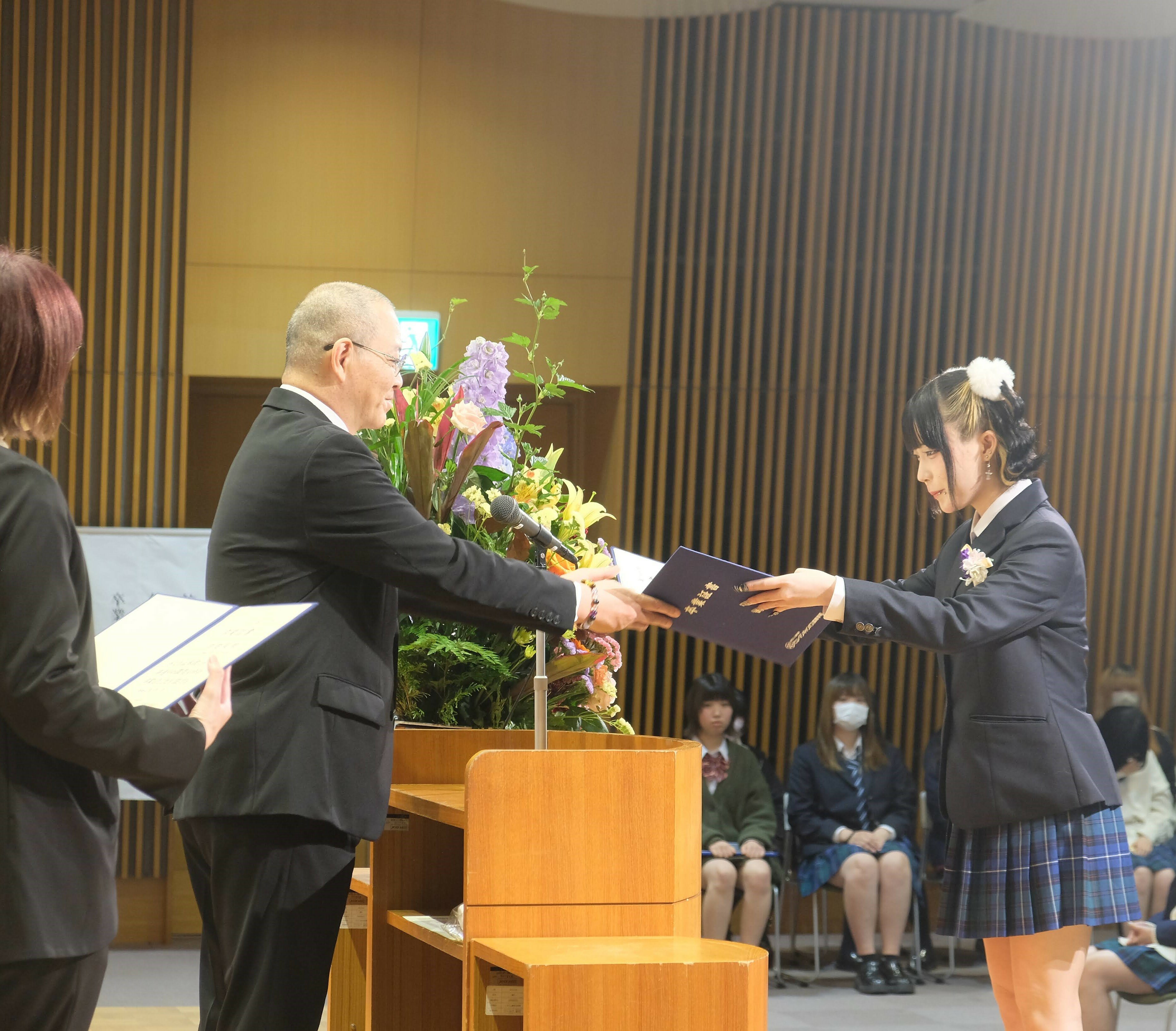 谷校長から卒業証書を受け取りました。