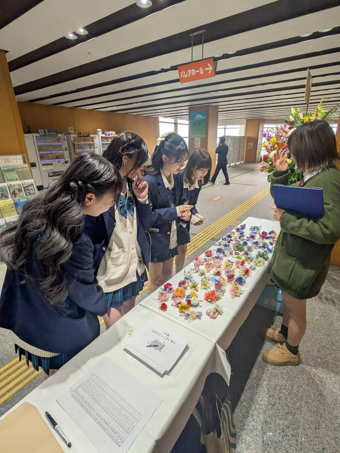 受付で在校生に迎えられ、