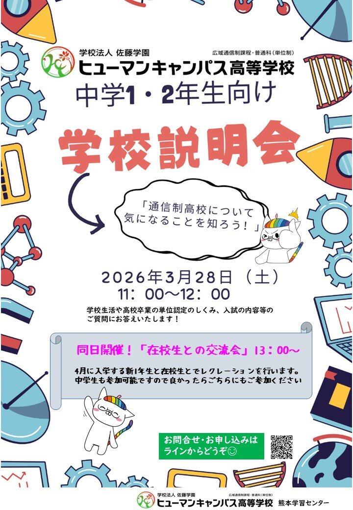 【熊本】3/28(土)中学1・2年生対象学校説明会を開催します!