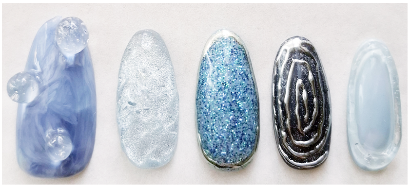 こだわりポイントは、「マーブル模様にしたり粘土ジェルで波模様を作って、