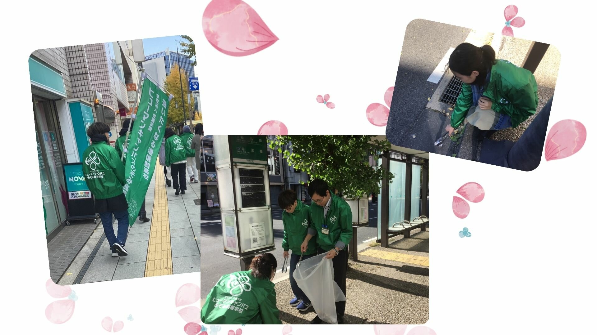 柳沢センター長と生徒有志で、万代周辺お掃除ボランティアを行いました。