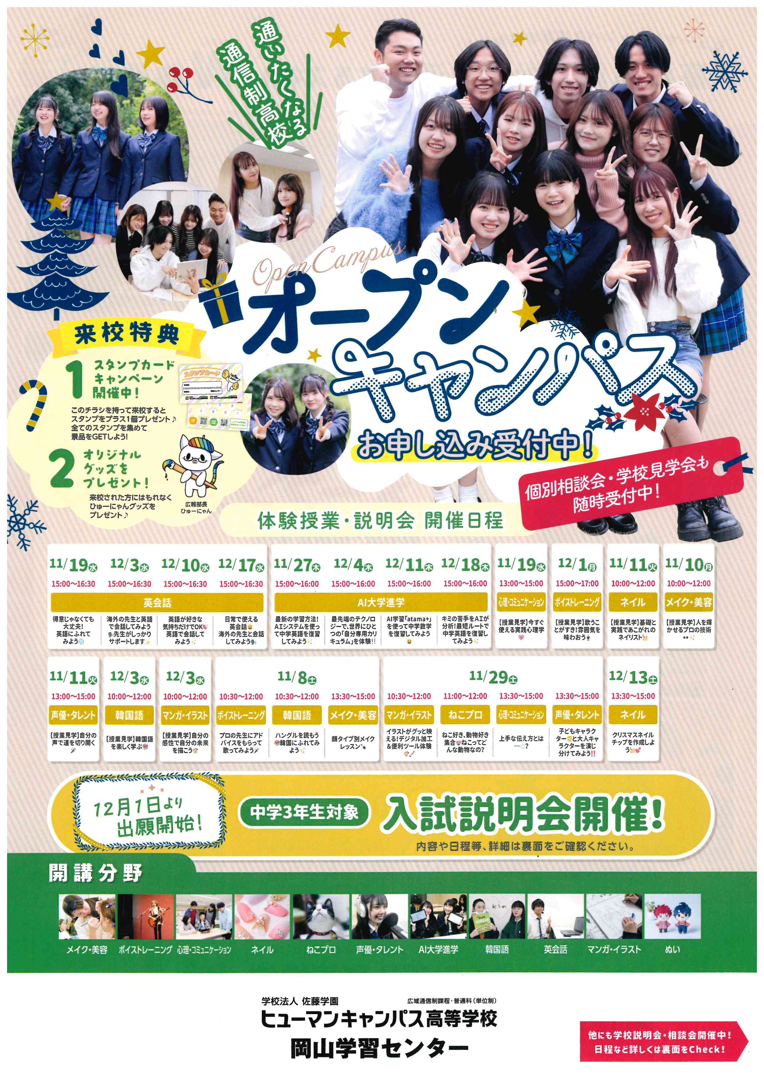 - 【岡山】冬のオープンキャンパスのお知らせ