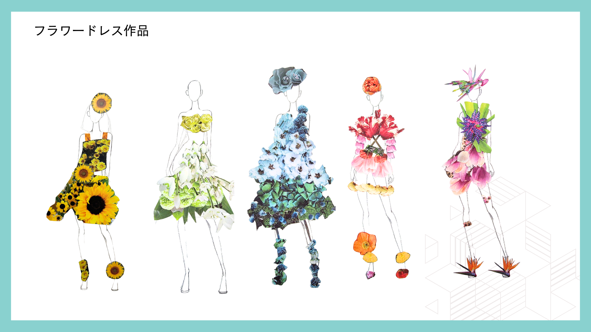 参加した皆さんからは、 「自分の好きな花がドレスになっていくのがすごく楽しかった!」 「プロの先生から、デザインのバランスや見せ方について直接アドバイスをもらえて感動しました。」