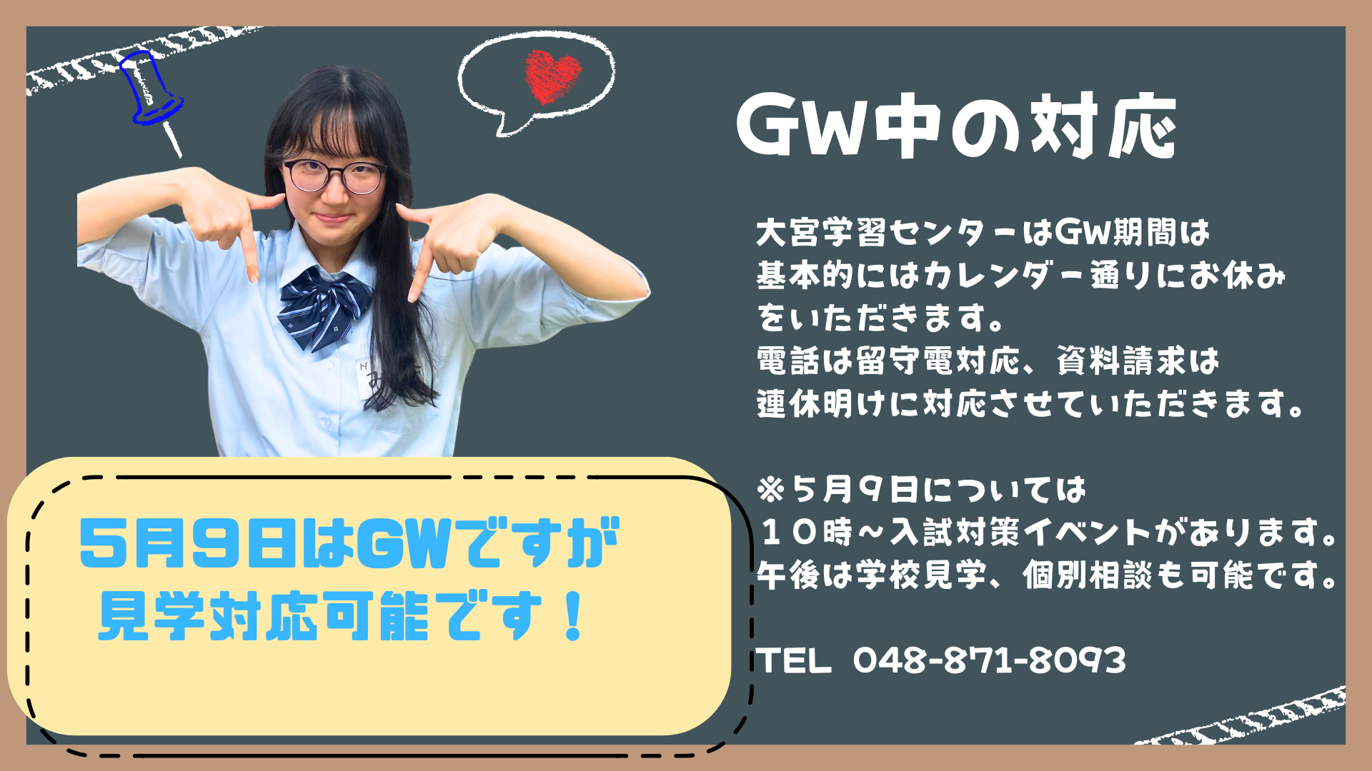 さて、間もなくGWですね!!GW期間中の大宮学習センターの対応について