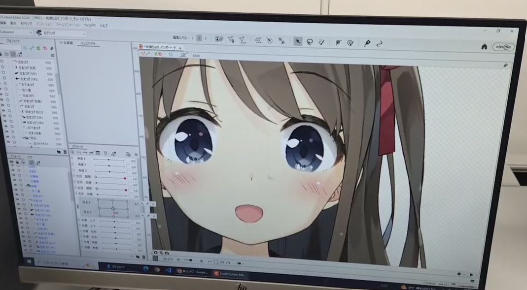 目や口の動きを作るリギング作業を行いました。