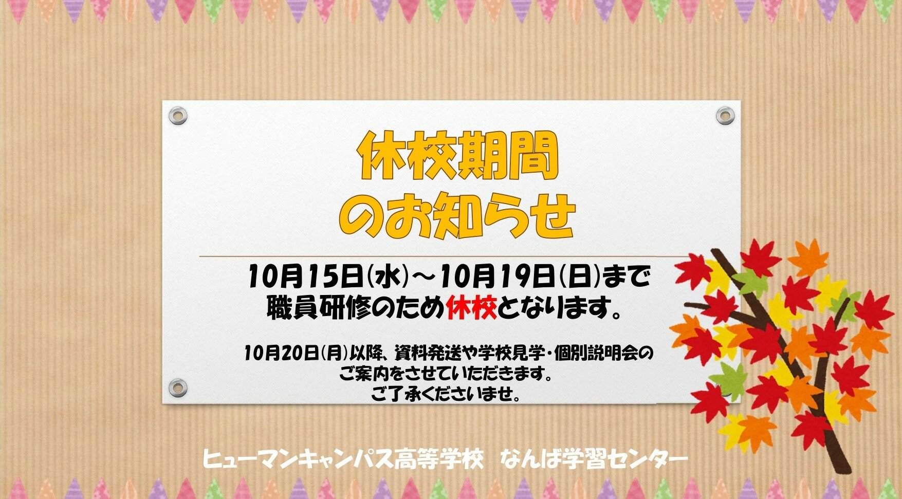 【なんば】職員研修に伴う休校期間のお知らせ🍁