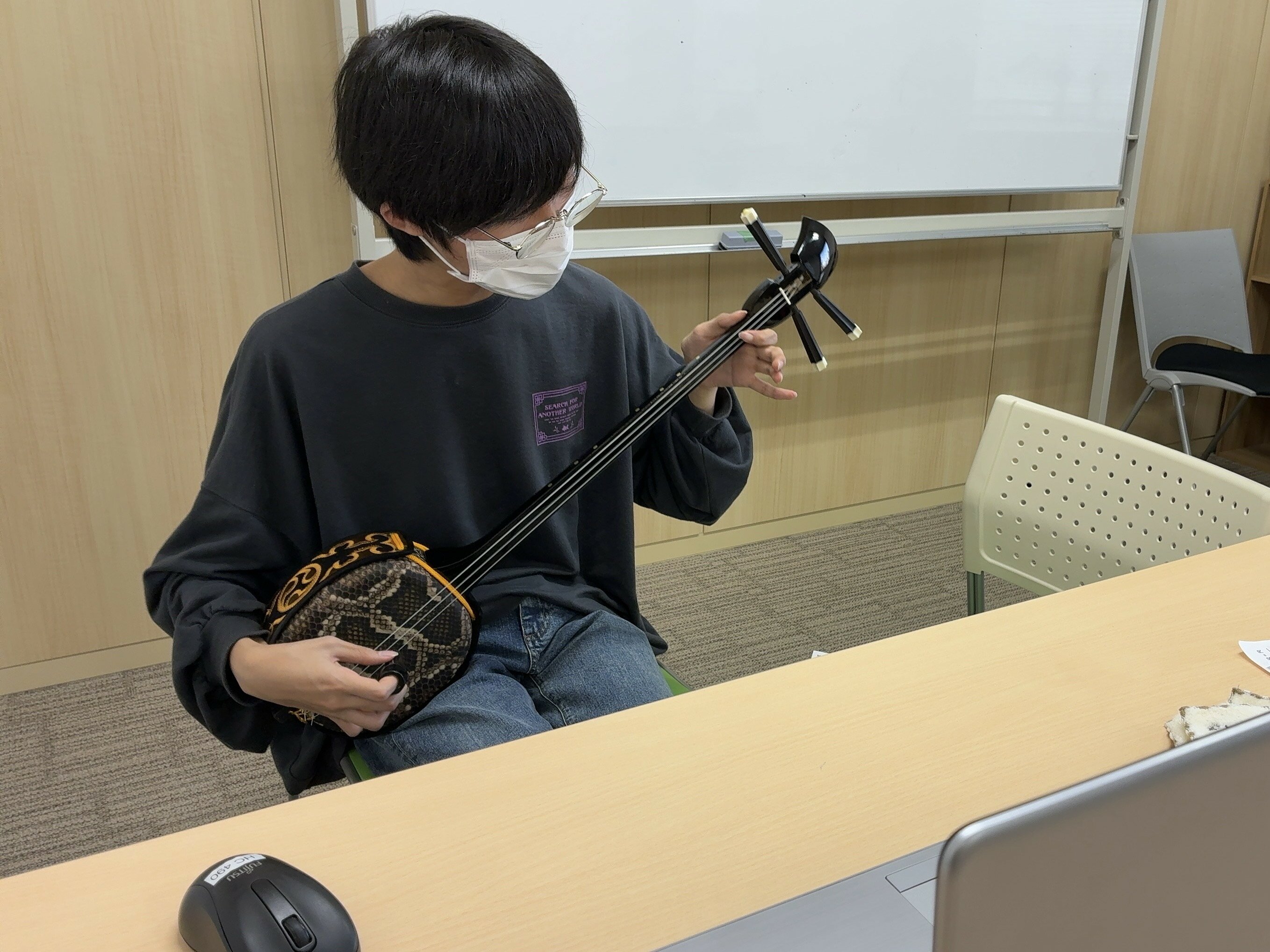 三線の授業で【弾き語り】頑張って練習していました⭐