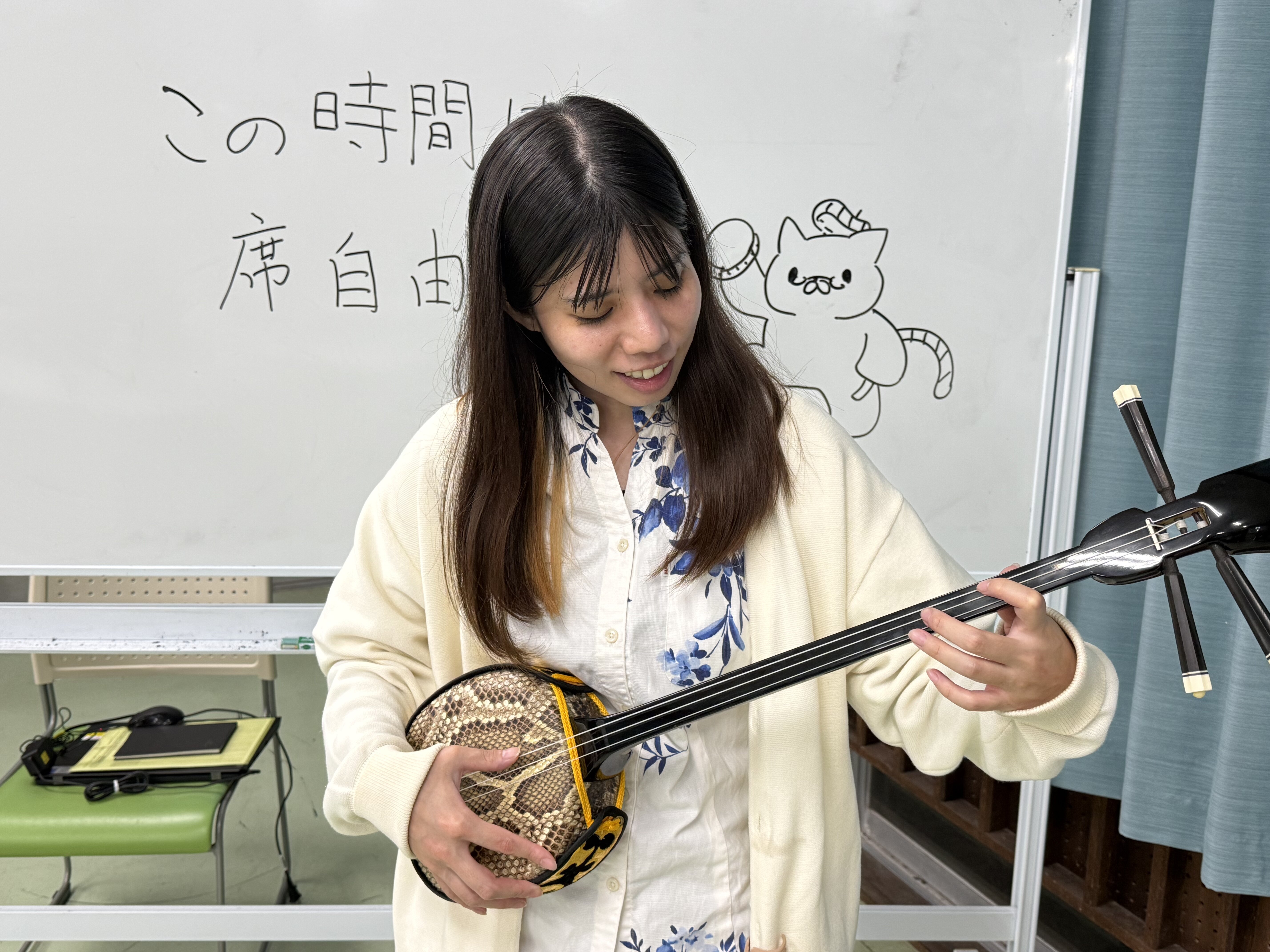 本校の先生が奏でる素敵な三線(さんしん)の音色でした🌺