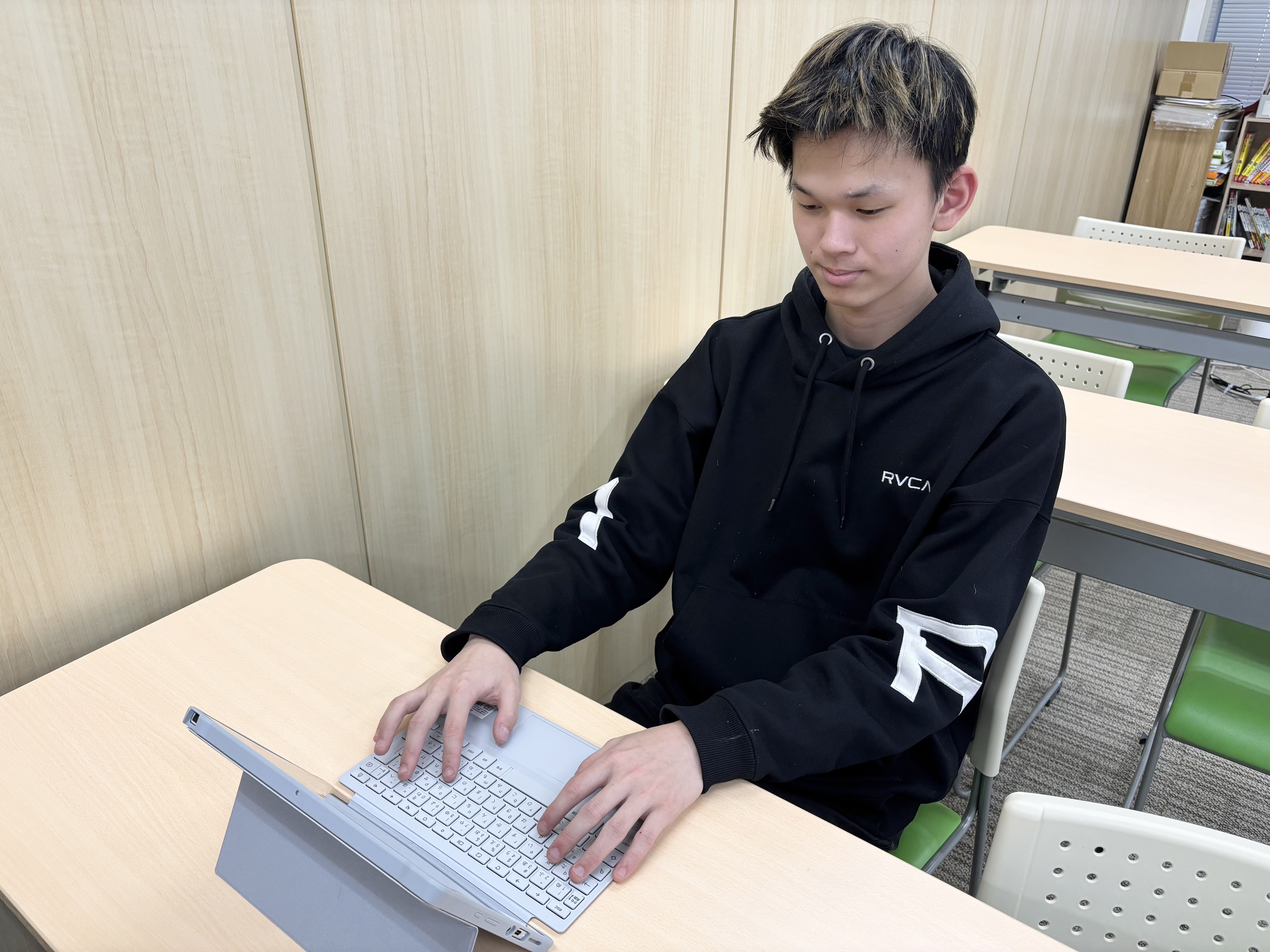 自分の目標に向かってコツコツと机に向かう姿や、