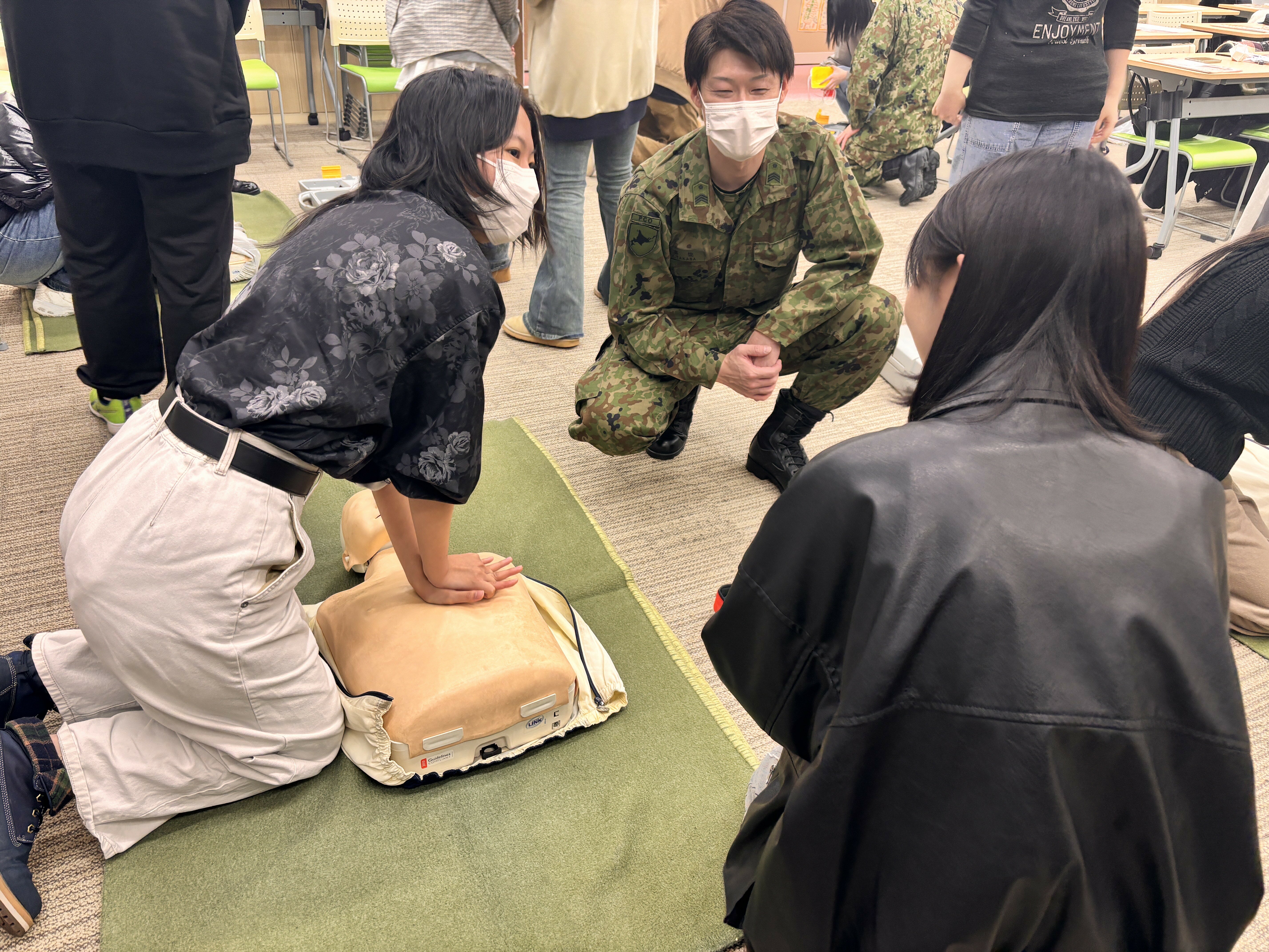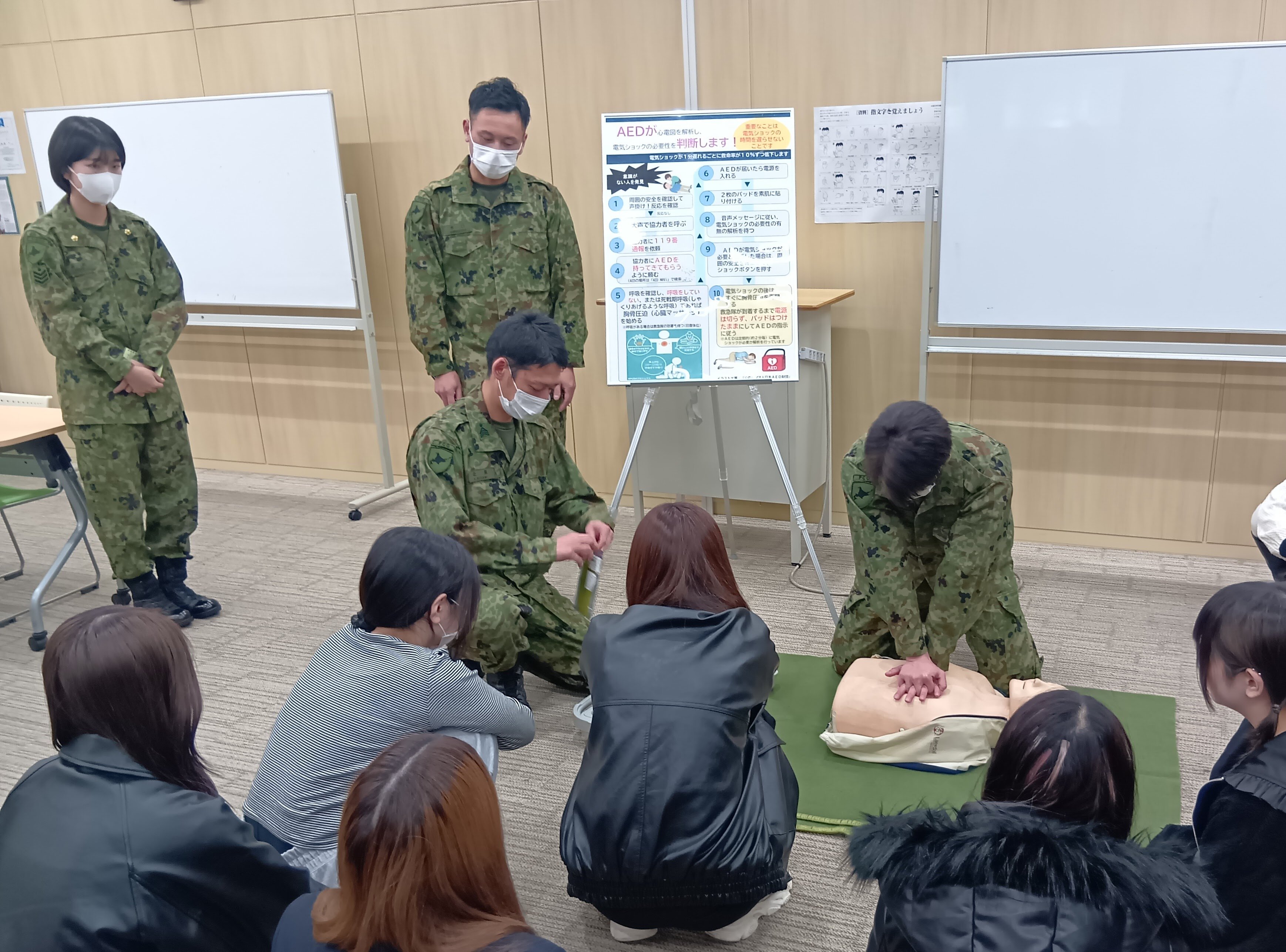 後半では心臓マッサージやAEDの使い方について学び、人形を相手に実践🙆♂️