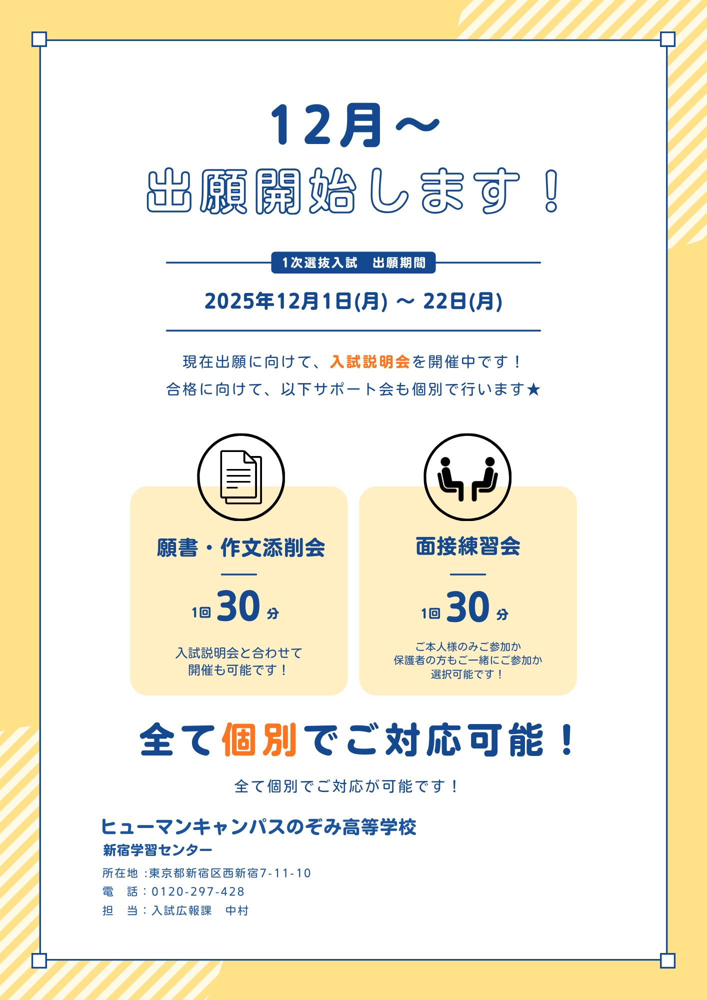 【新宿】📅 12月1日出願開始!個別サポート会で万全の準備を!✨