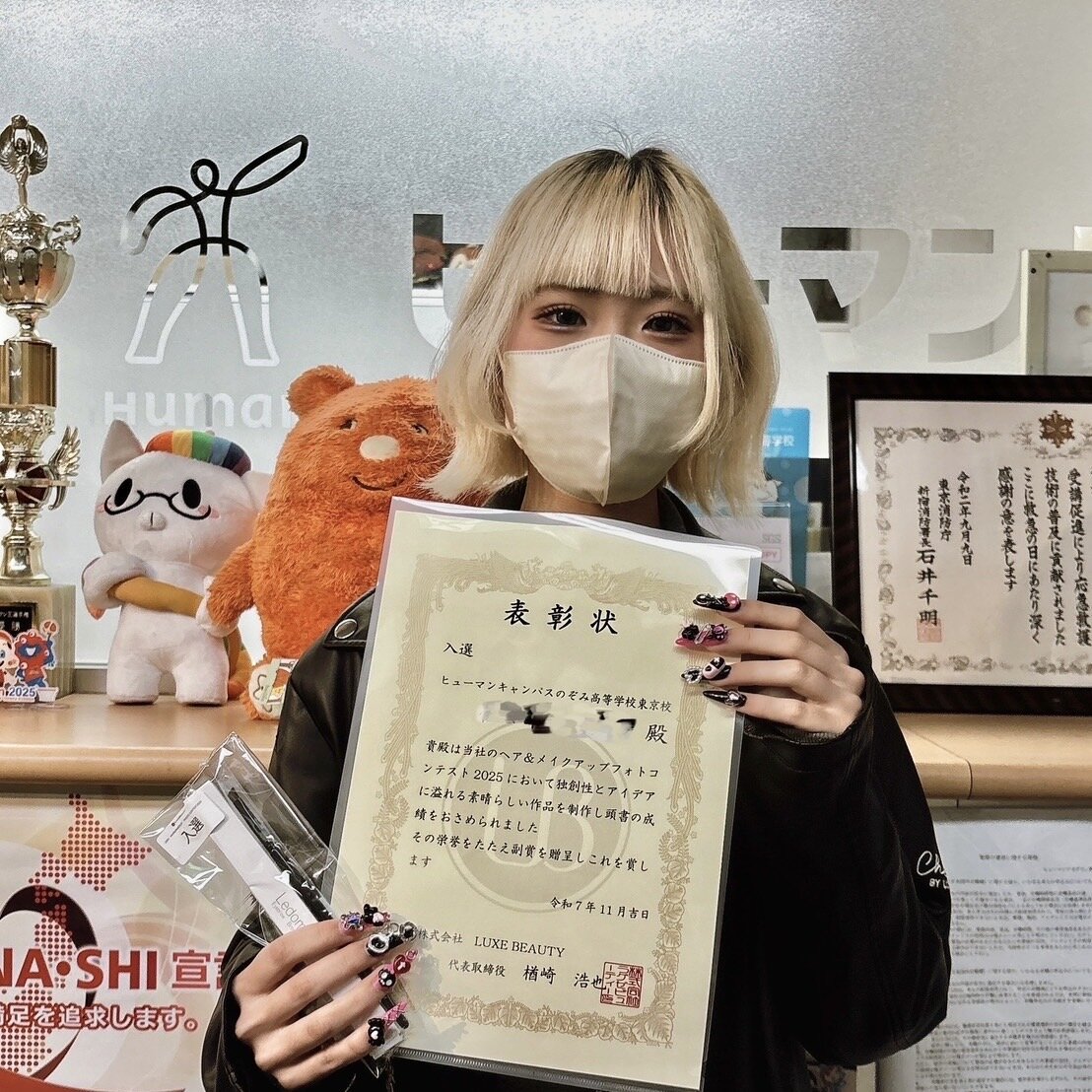 入選者は、メイク・美容専攻に在籍している1年生のSさん。