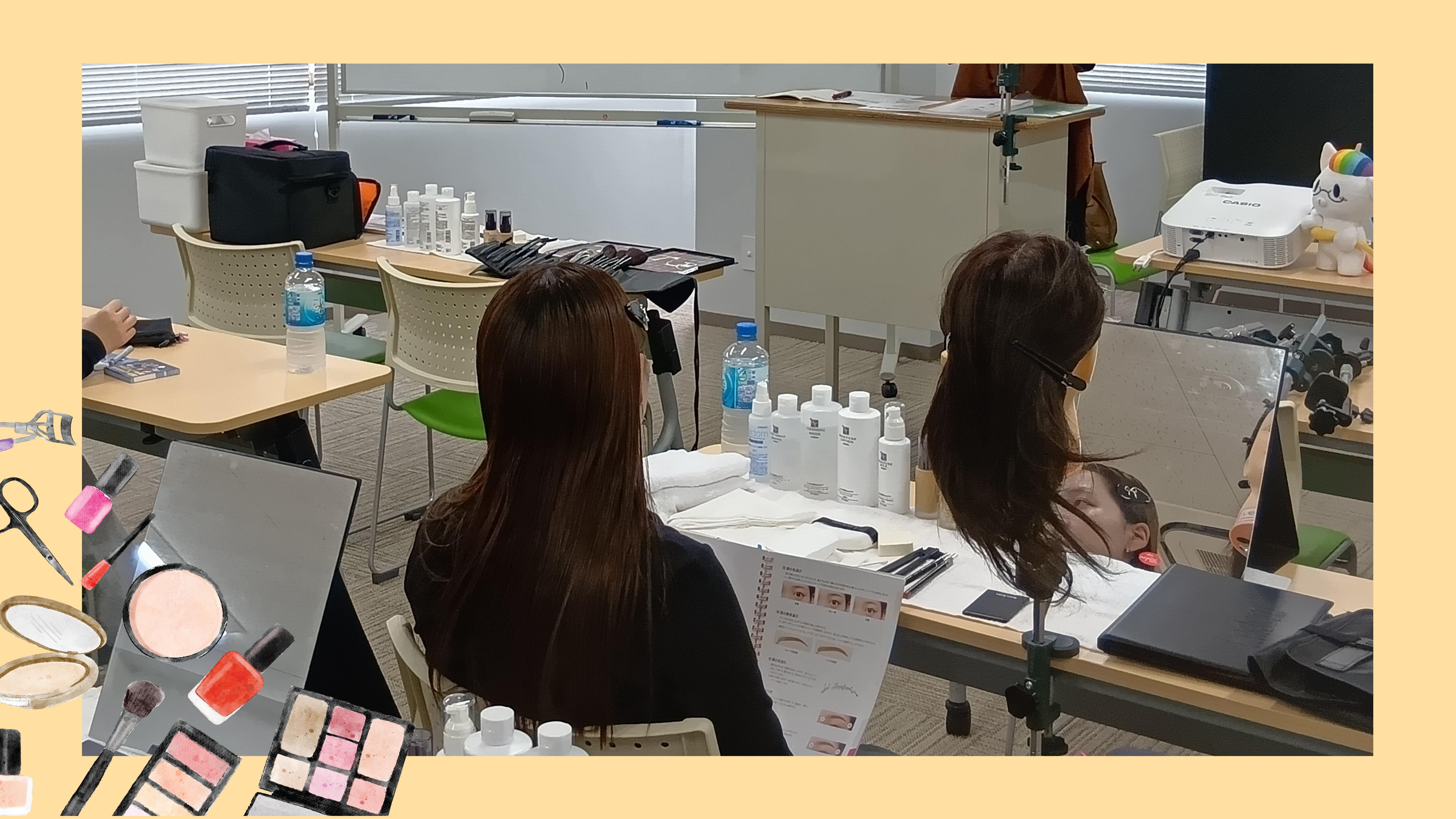 山﨑です🙋♀️この日のメイク美容専攻の授業のテーマは「アイブロウ」の描き方~~💖