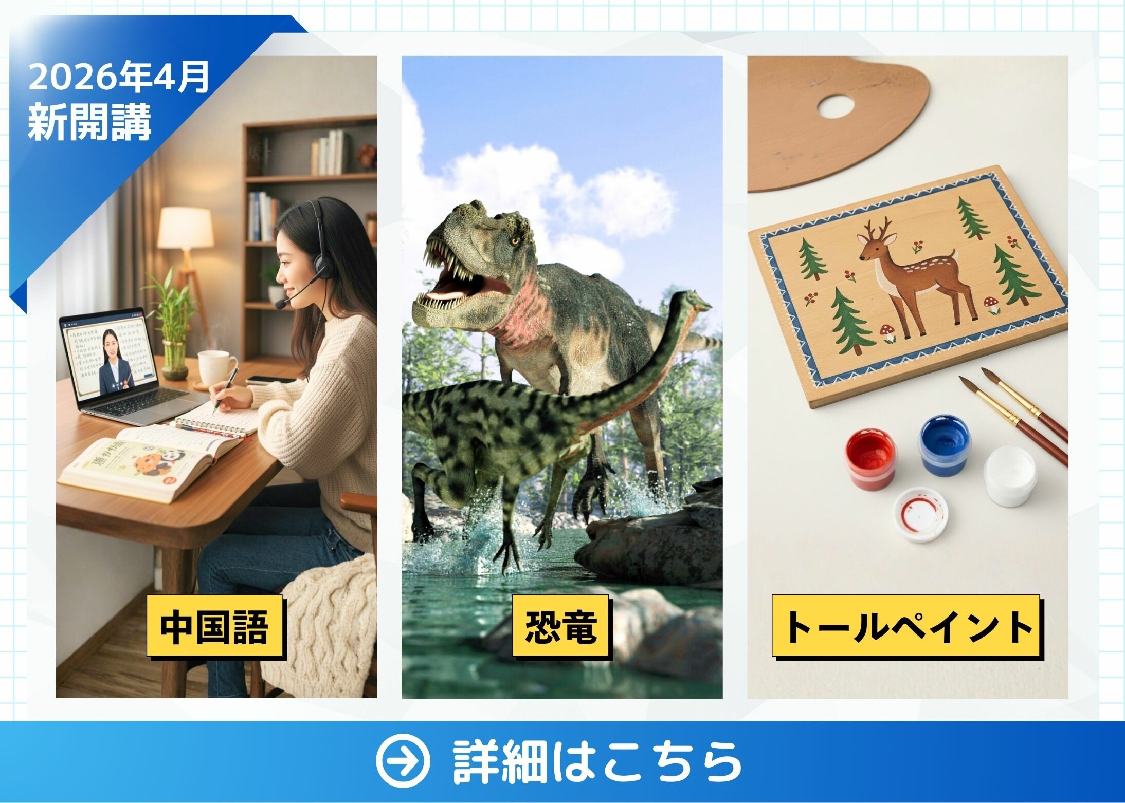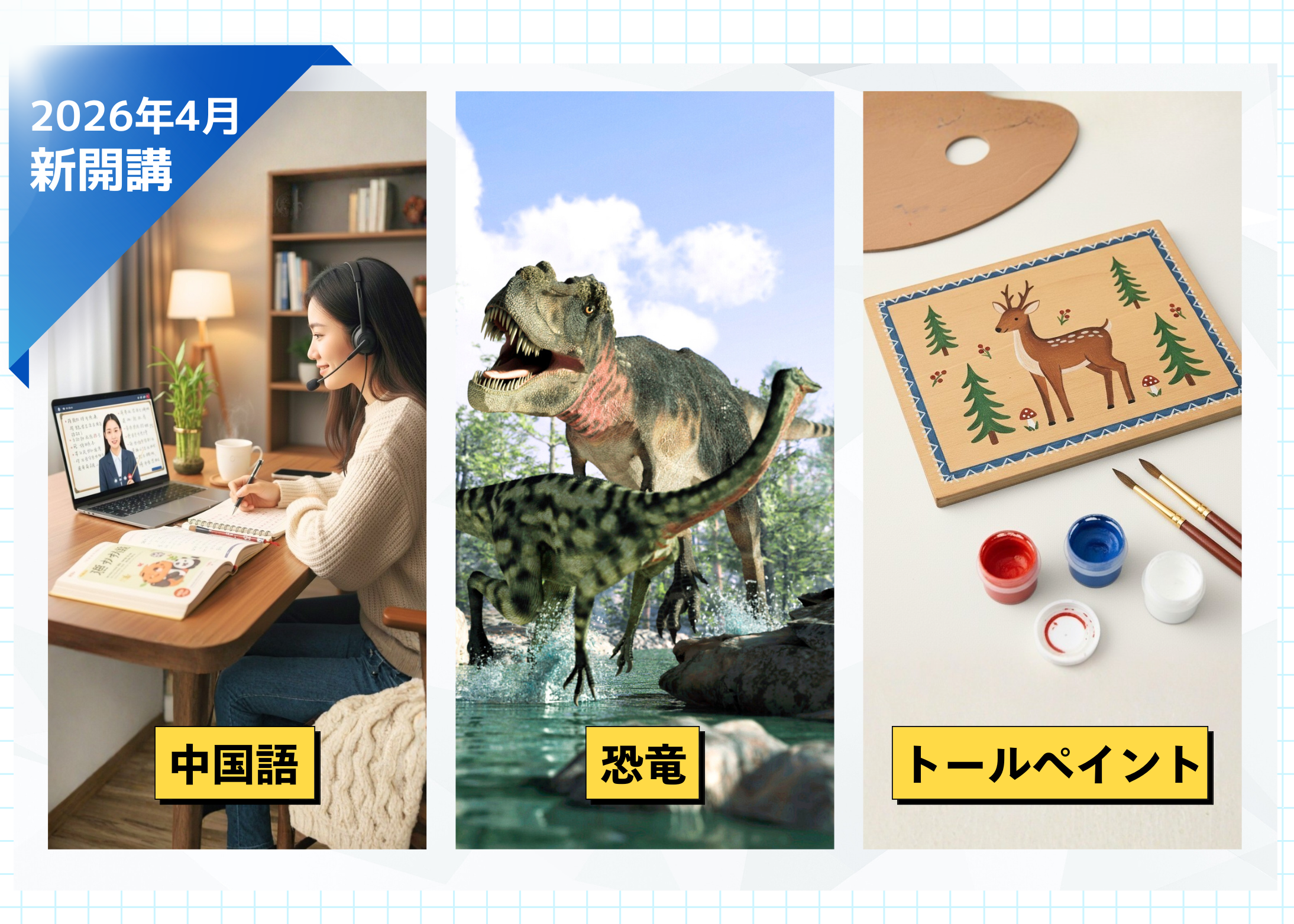 2026年4月新専攻開講!「中国語」「トールペイント」「恐竜」のご紹介